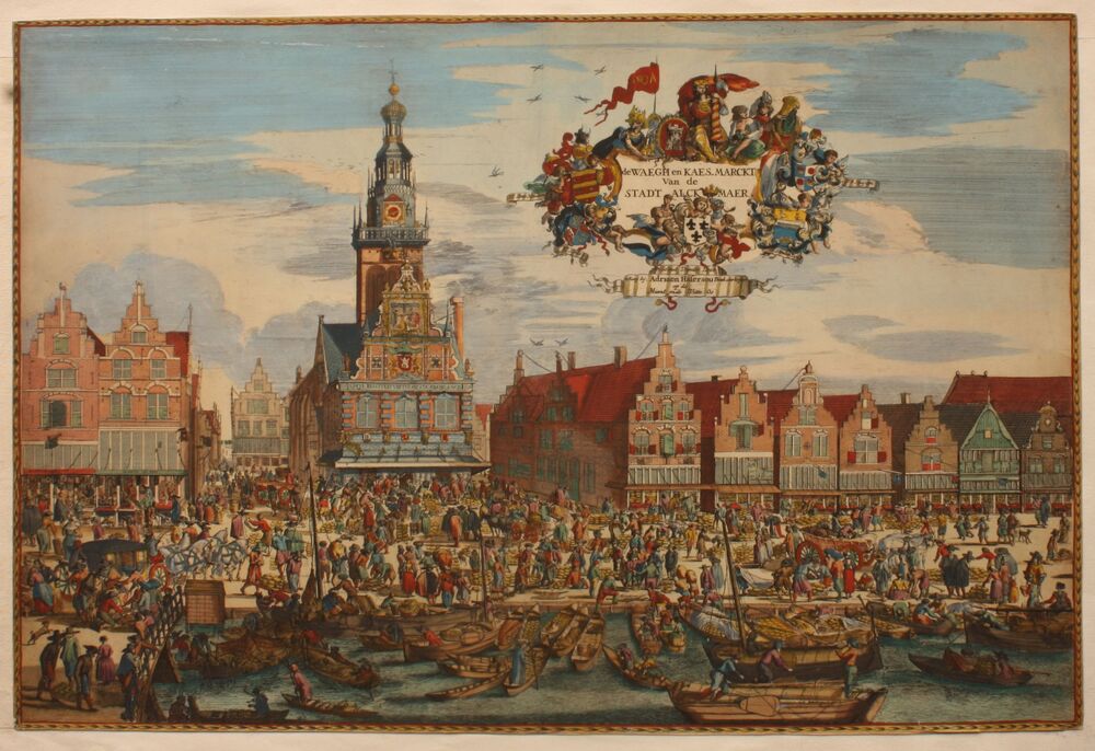 Gravure voorstellende 'De markt te Culemborg bij hoo...