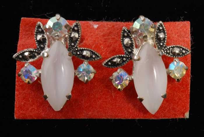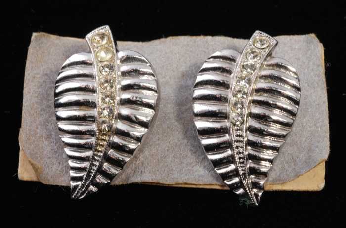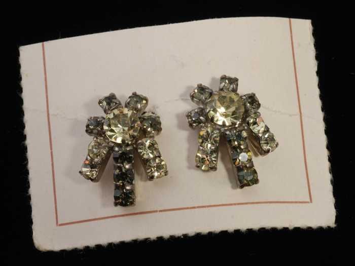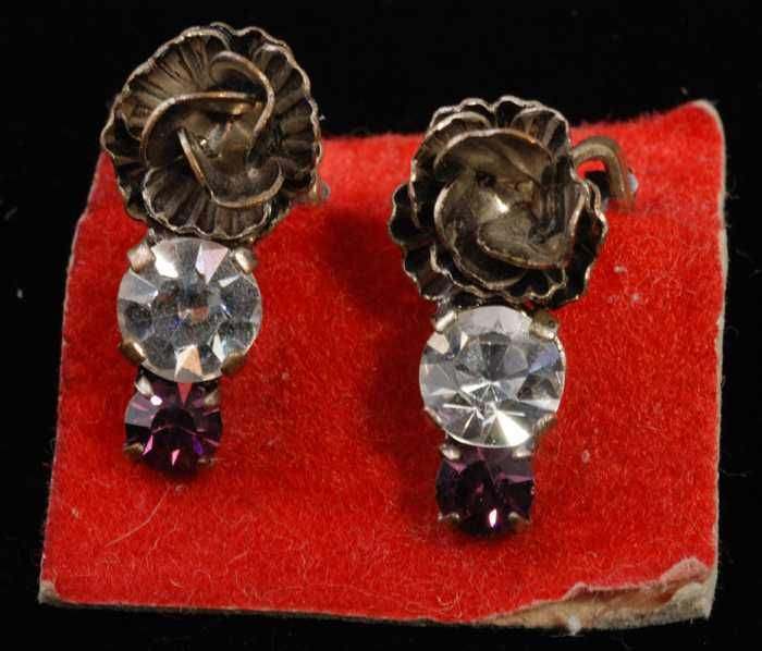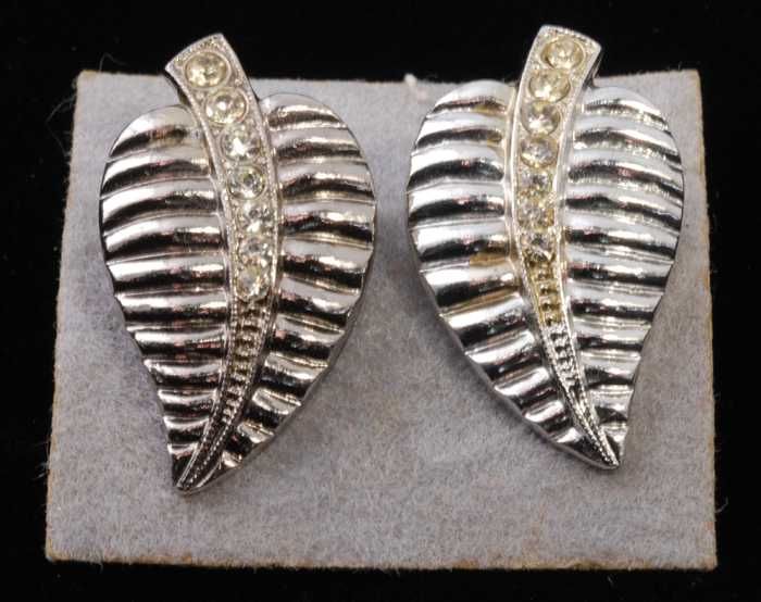 Paar oorbellen, clips met kunstdiamantjes en zilverk...
