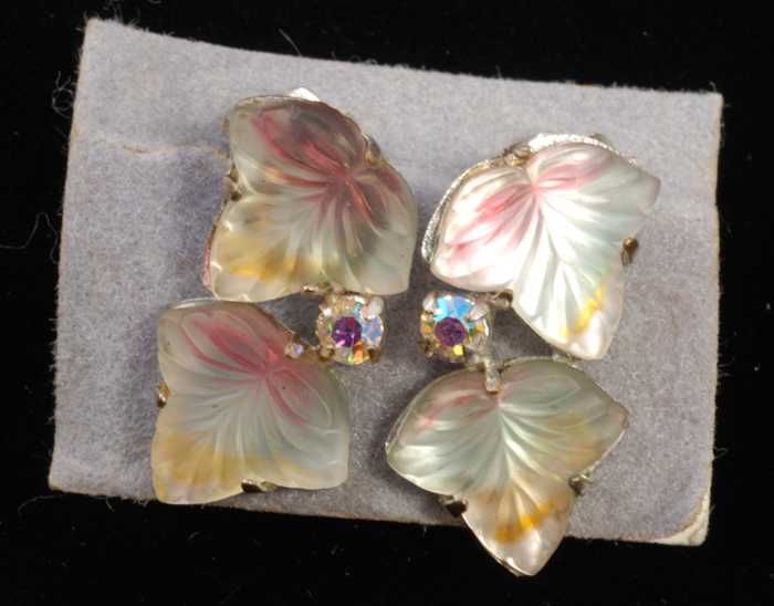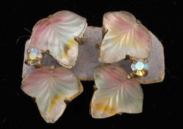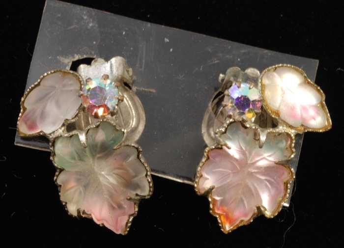 Eén paar oorbellen, clip met matglazen druivenblaadj...