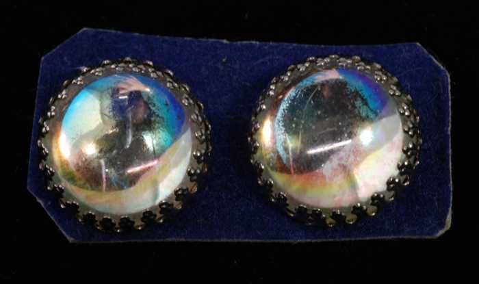 Eén paar oorbellen, clip met forse iriserende bolle ...