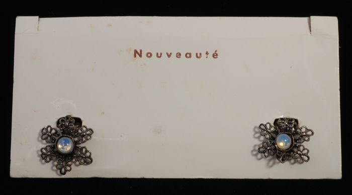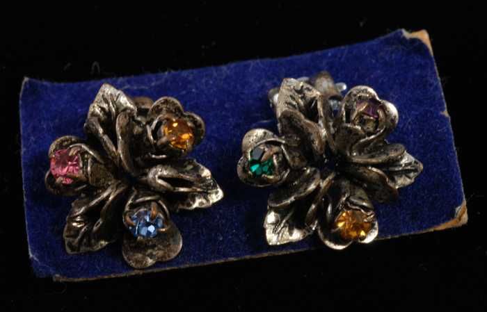 Paar oorbellen, clips met een bloemvormige zilverkle...