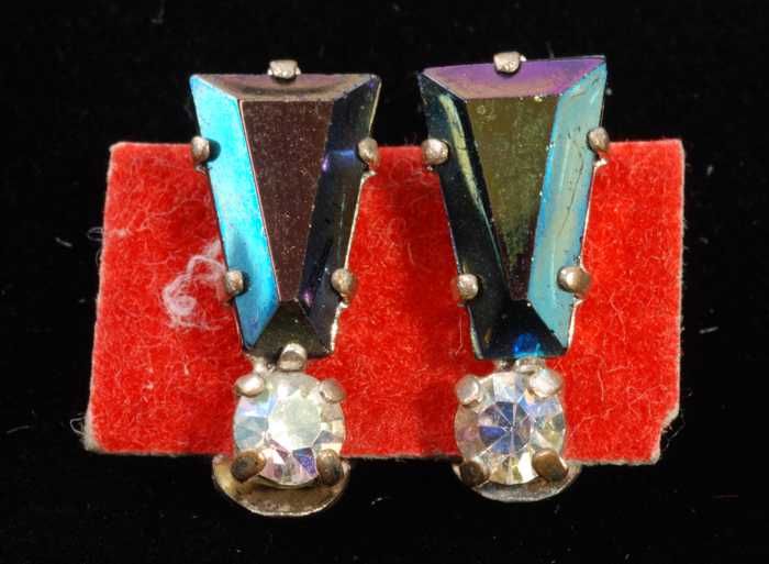 Eén paar oorbellen, clip met paarsblauwe facetsteen ...