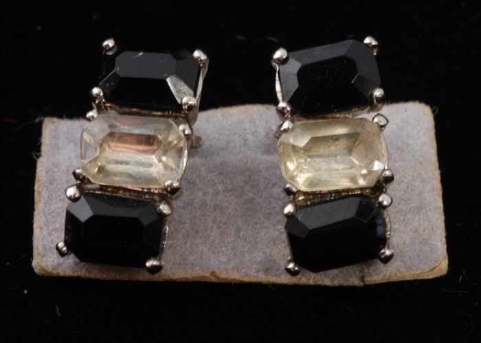 Eén paar oorbellen, clip met zwarte en kleurloze rec...