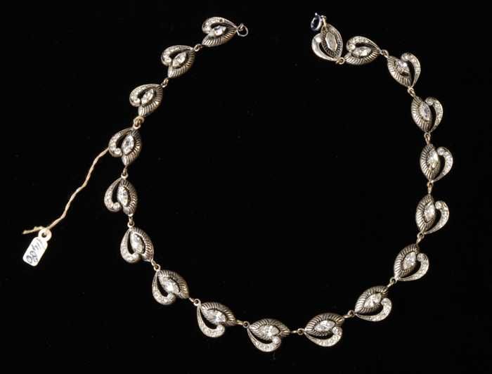 Halsketting met amandelvormige kunstdiamantjes en zw...