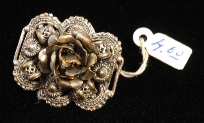 Broche, ornament van zilverkleurig filigrein metaal ...