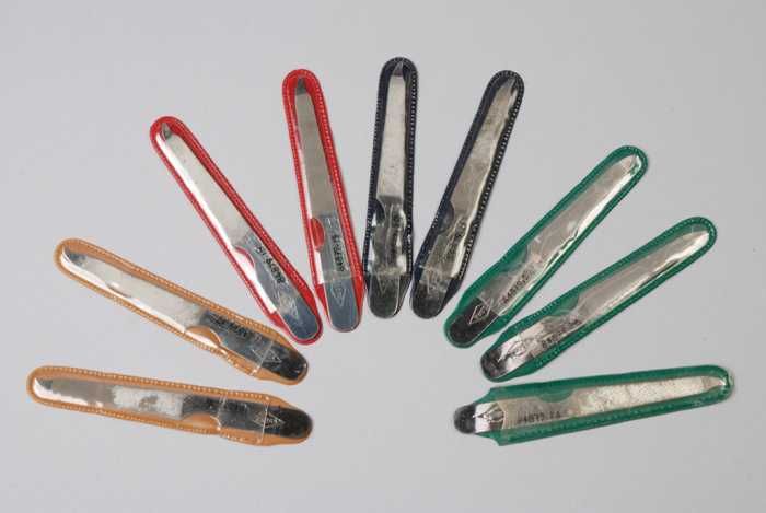 Negen identieke nagelvijlen, klein model in een gekl...