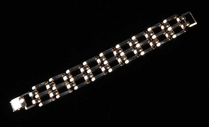 Armband, vijf rechthoekige plaatjes van goudkleurig ...