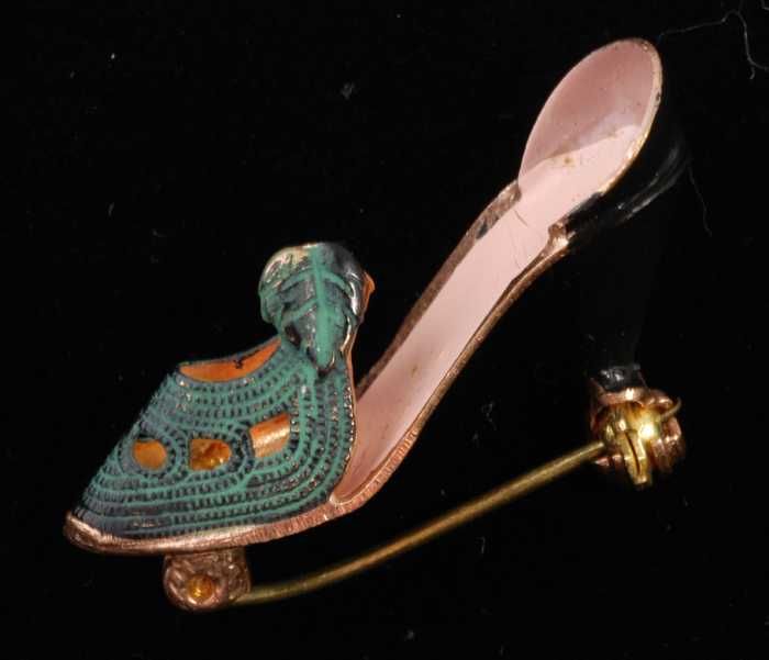 Broche, hooggehakt open schoentje van deels geverfd ...