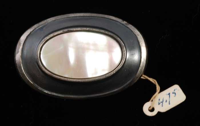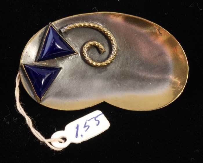 Broche, ovaal en gebogen van donker gekleurd metaal ...
