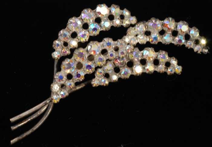 Broche, bloemetjes en blaadjes van zilverkleurig met...