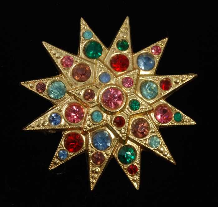 Broche van goudkleurig metaal, 12-puntige met gekleu...