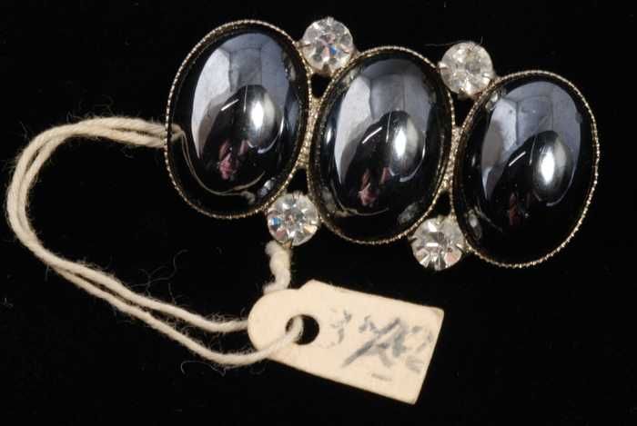 Broche, drie ovale bolle hematiet (?) stenen met kun...