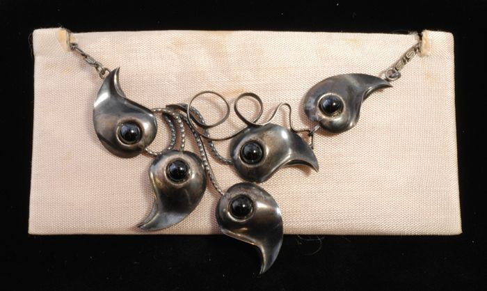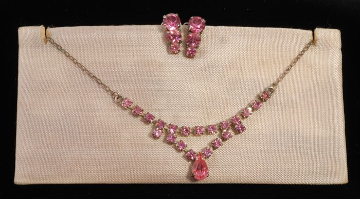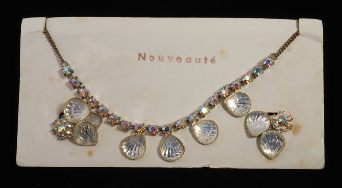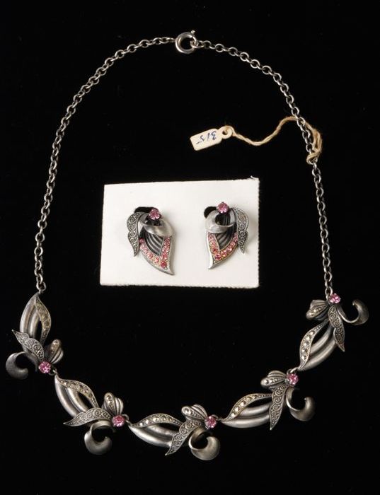 Halsketting (A) en bijbehorend paar oorclips (B-C) b...
