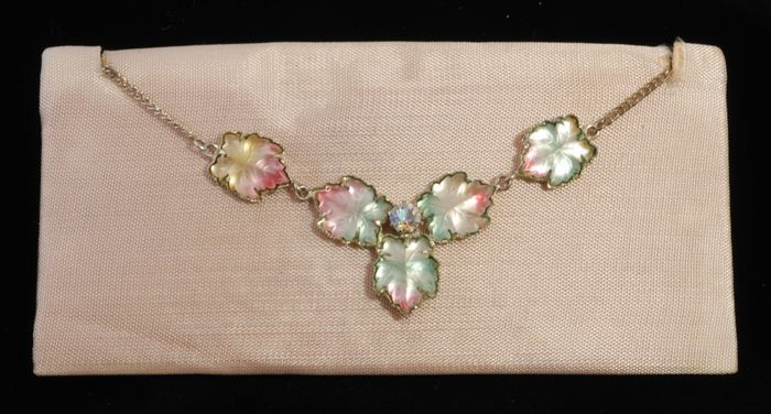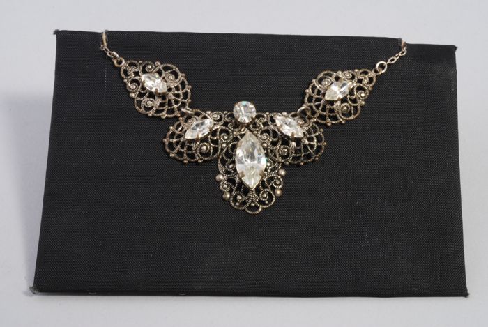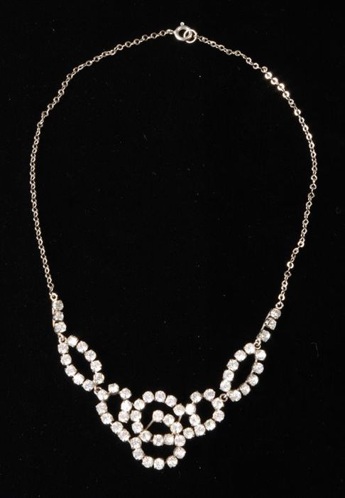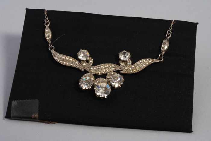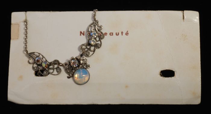 Halsketting met kunstdiamantjes en imitatie-opaal (?...