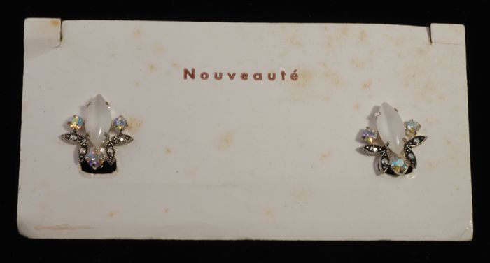 Eén paar oorbellen, clip met drie kunstdiamantjes in...