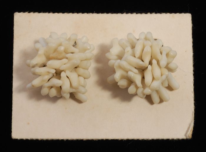 Paar oorbellen, clip met wit plastic imitatiekoraal,...