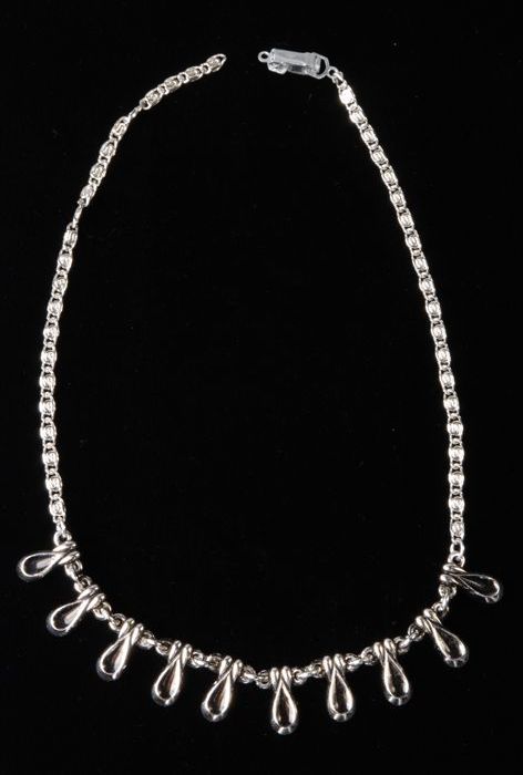 Halsketting van zilverkleurige metaal met ornamenten...