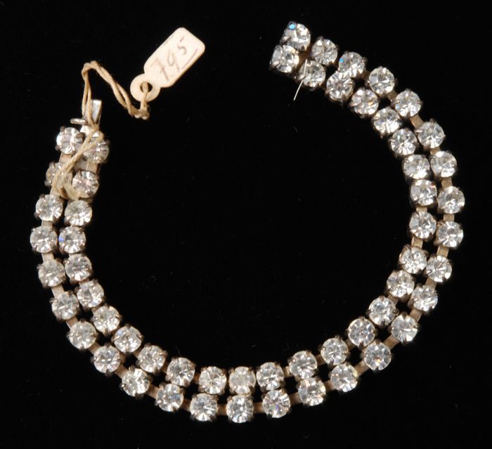 Armband, dubbele rij kunstdiamantjes in zilverkleuri...