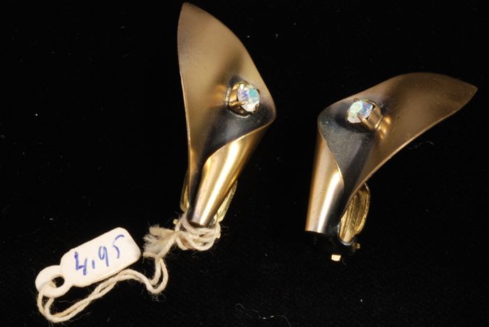 Paar oorbellen, clip met opgerolde metalen bladvorm ...