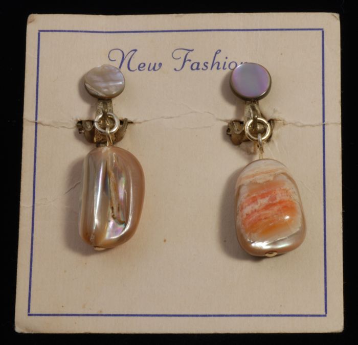 Paar oorbellen, clip met paarlemoeren steen-achtige ...