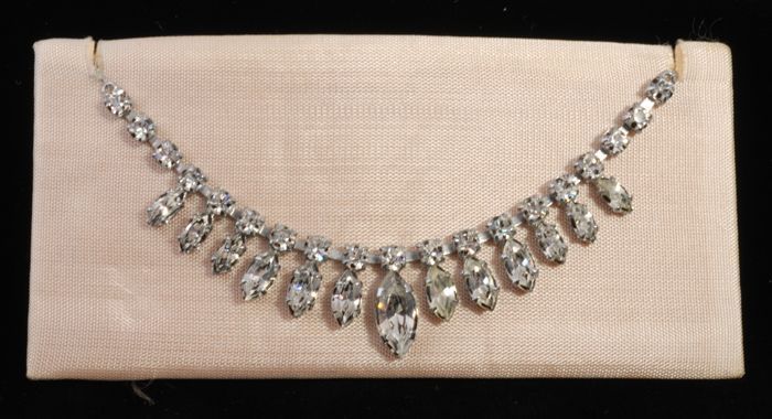 Halsketting met amandelvormige kunstdiamantjes op zi...