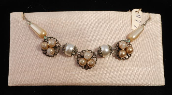 Halsketting met imitatieparels en zilverkleurige fil...
