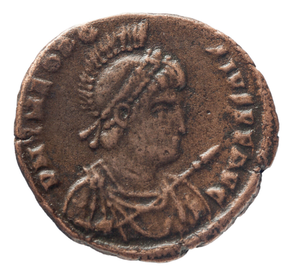 Aes 2 uit het Romeinse Rijk op naam van Theodosius I...