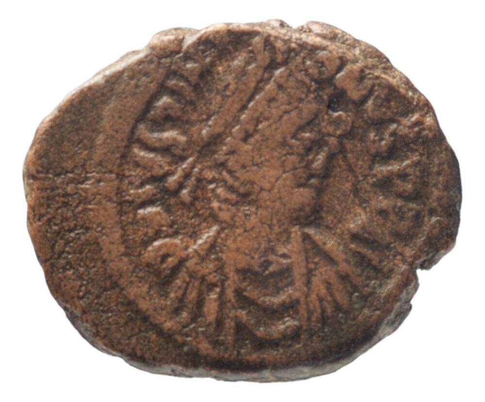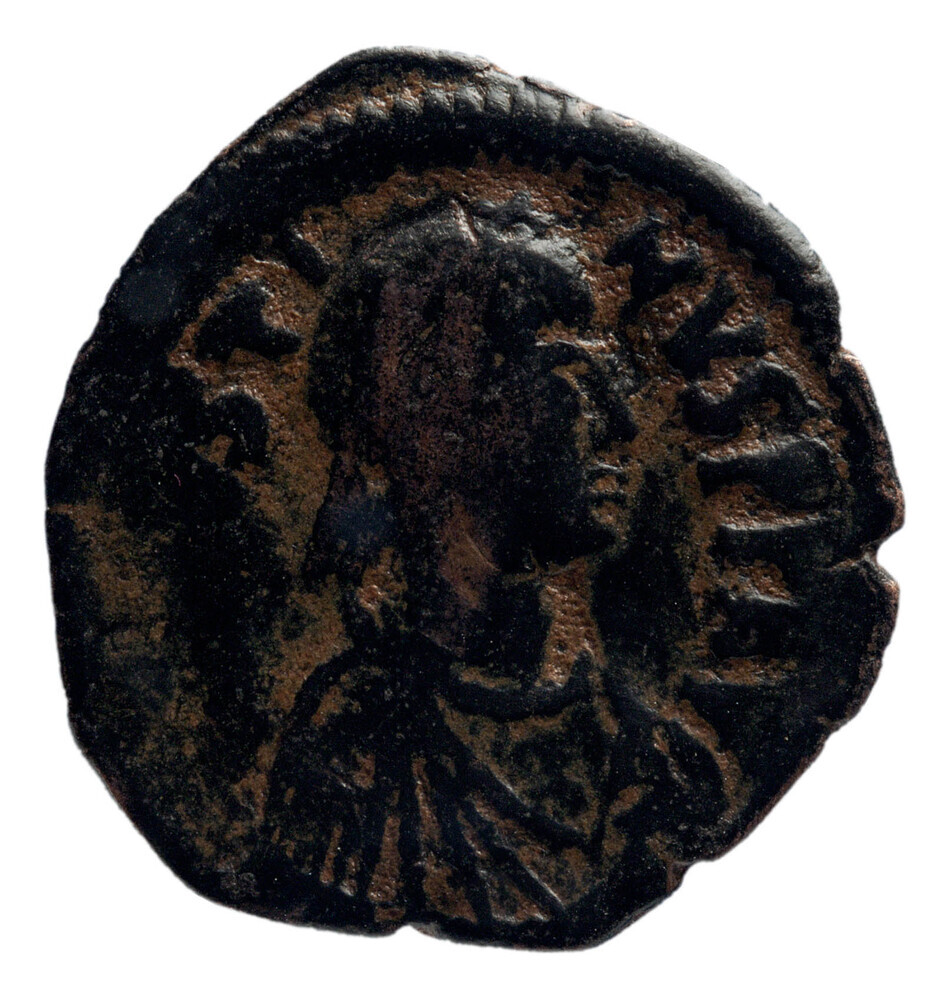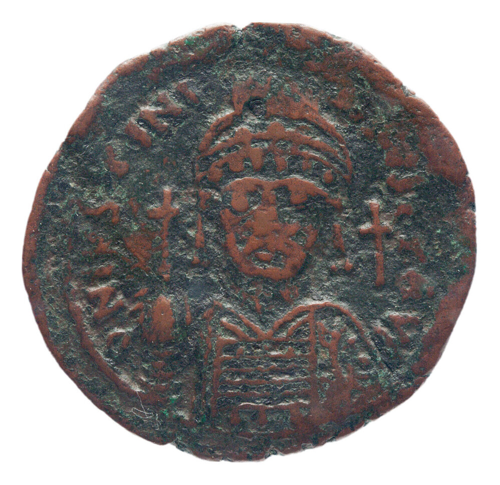 Achtste follis (vijf nummi) uit het Byzantijnse Rijk...