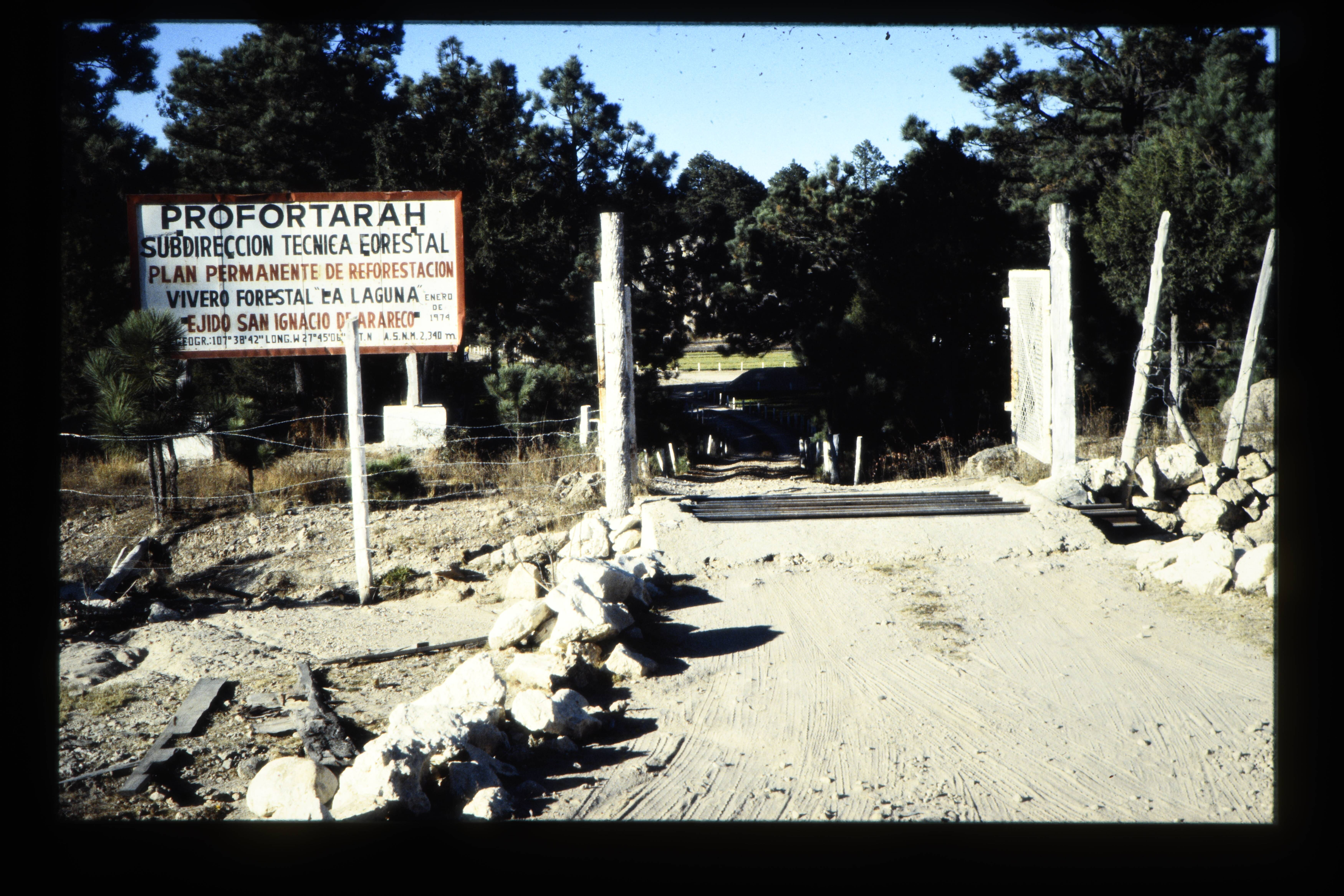 'Hoofdingang van buitenverblijf (boomkwekerij). '