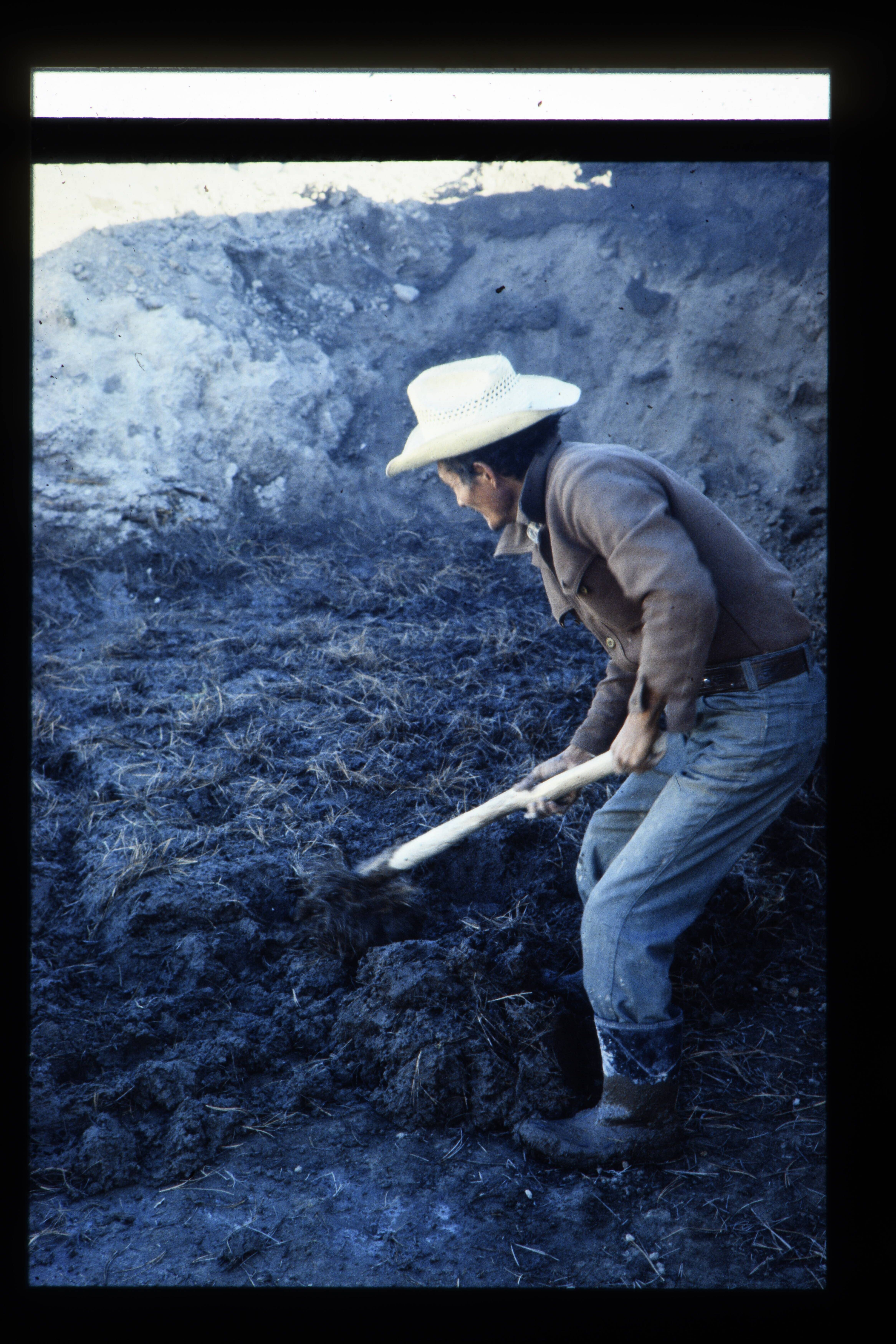 'Man bezig met het maken van adobe tegels.'