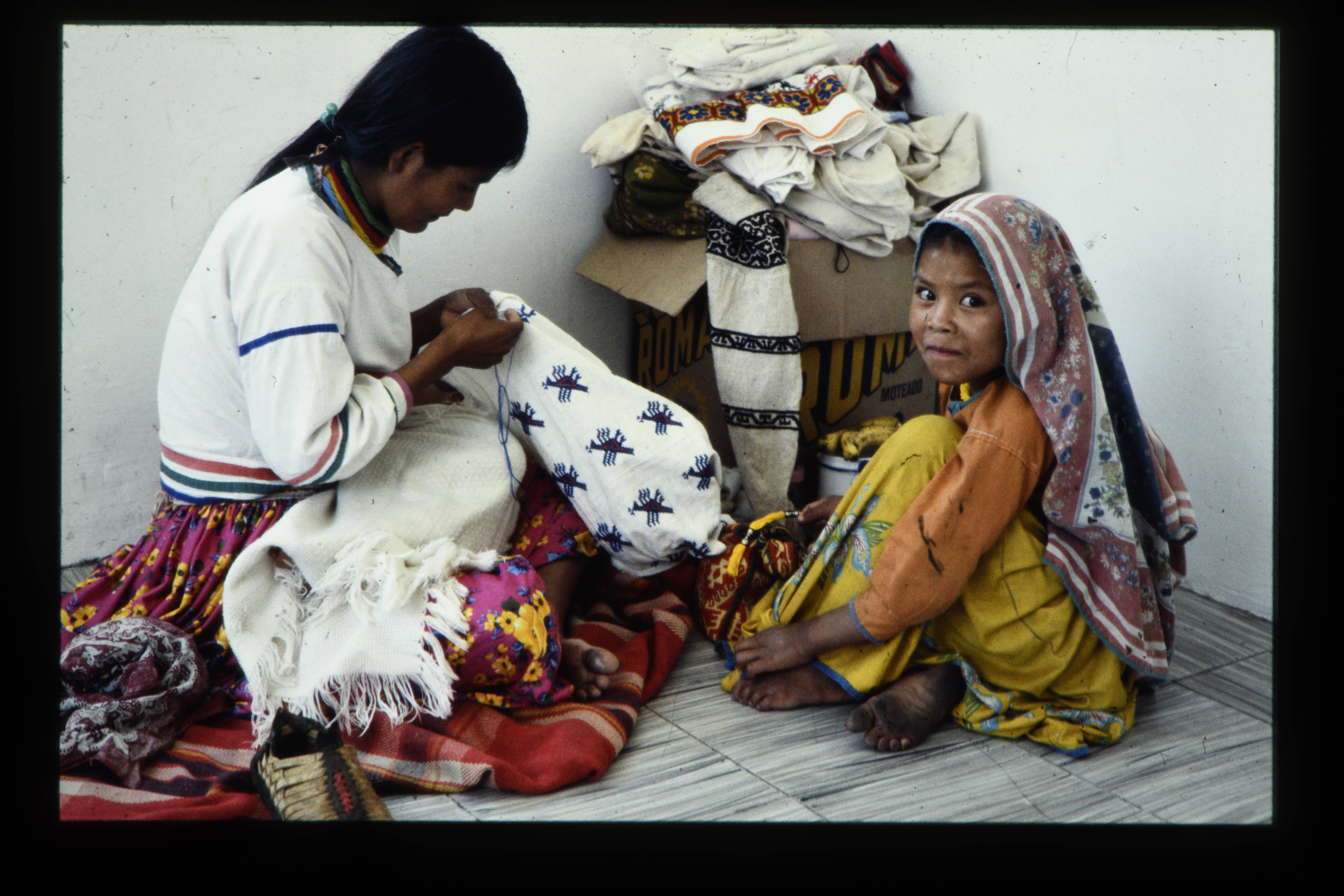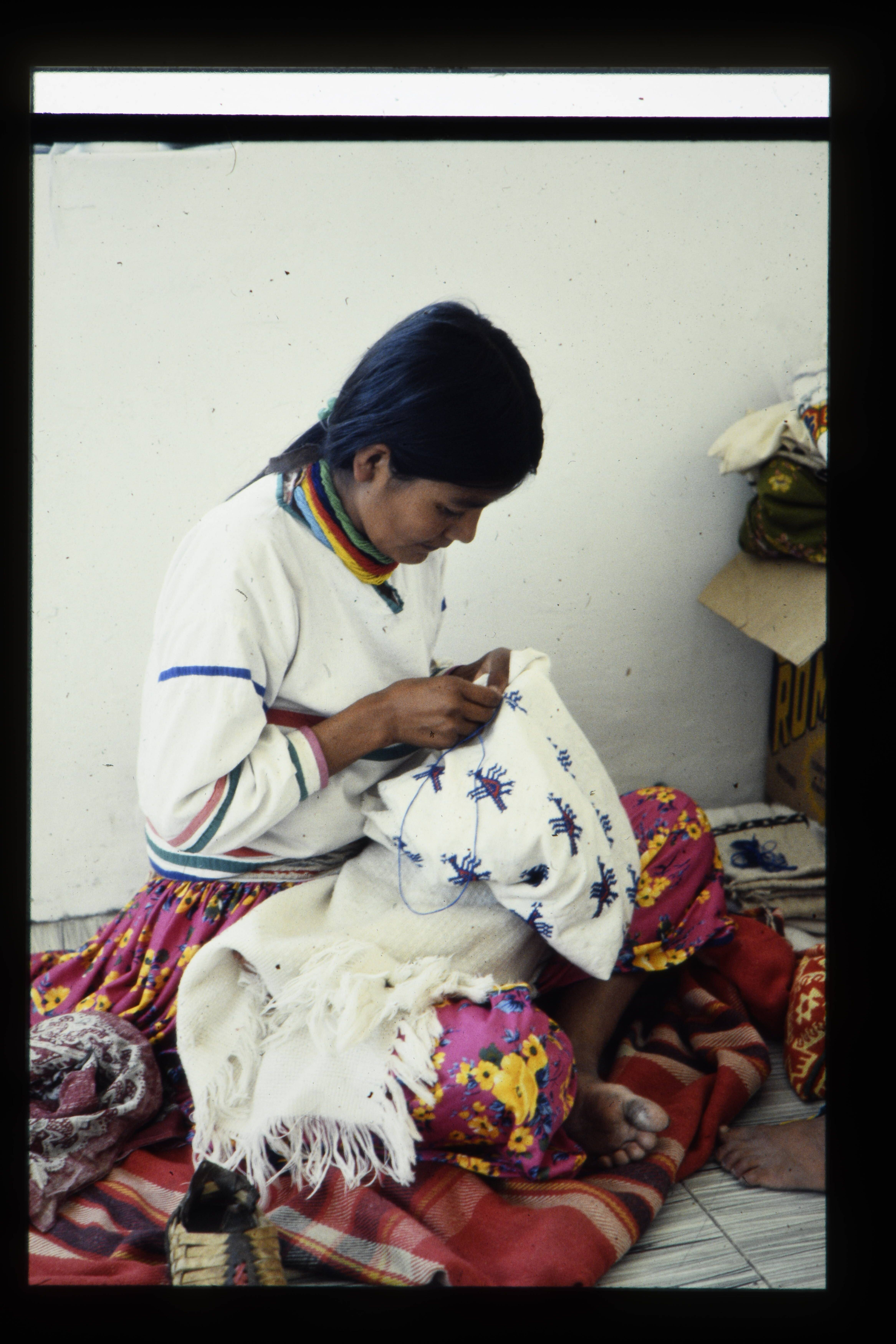 'Borduurwerk van Huicholes (op rokken, tassen, maske...