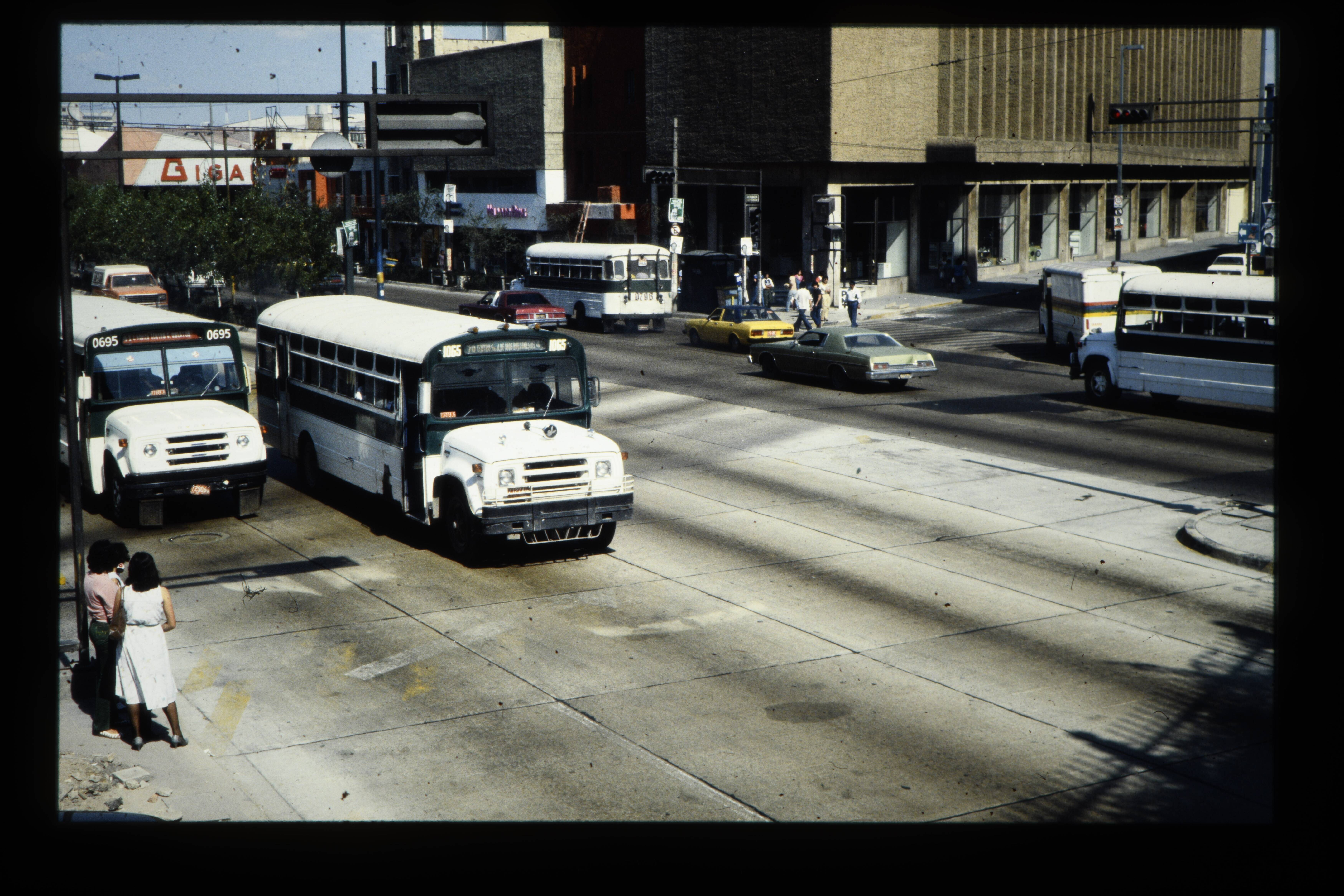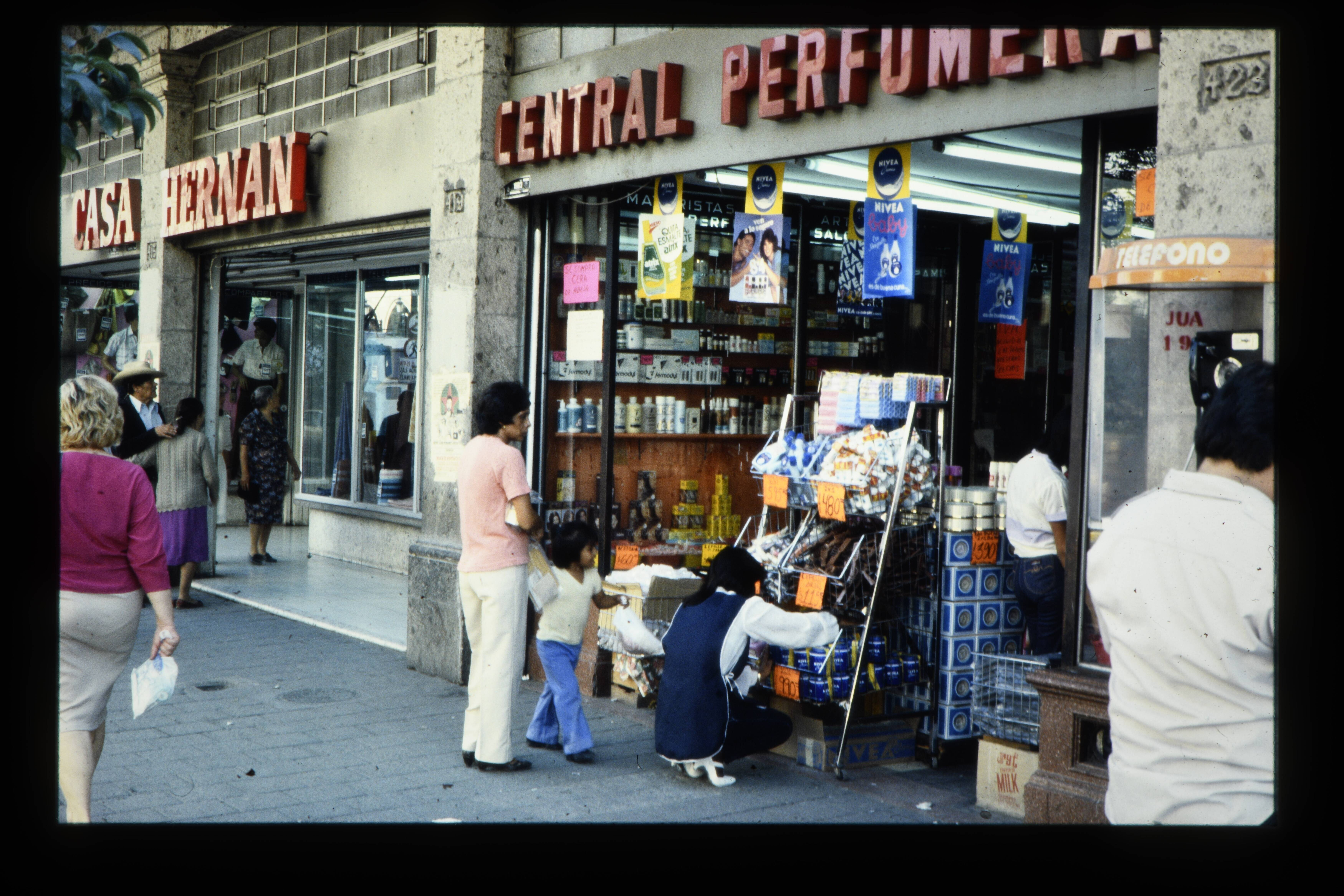 'Zaak in Guadalajara met trolly-bus.'
