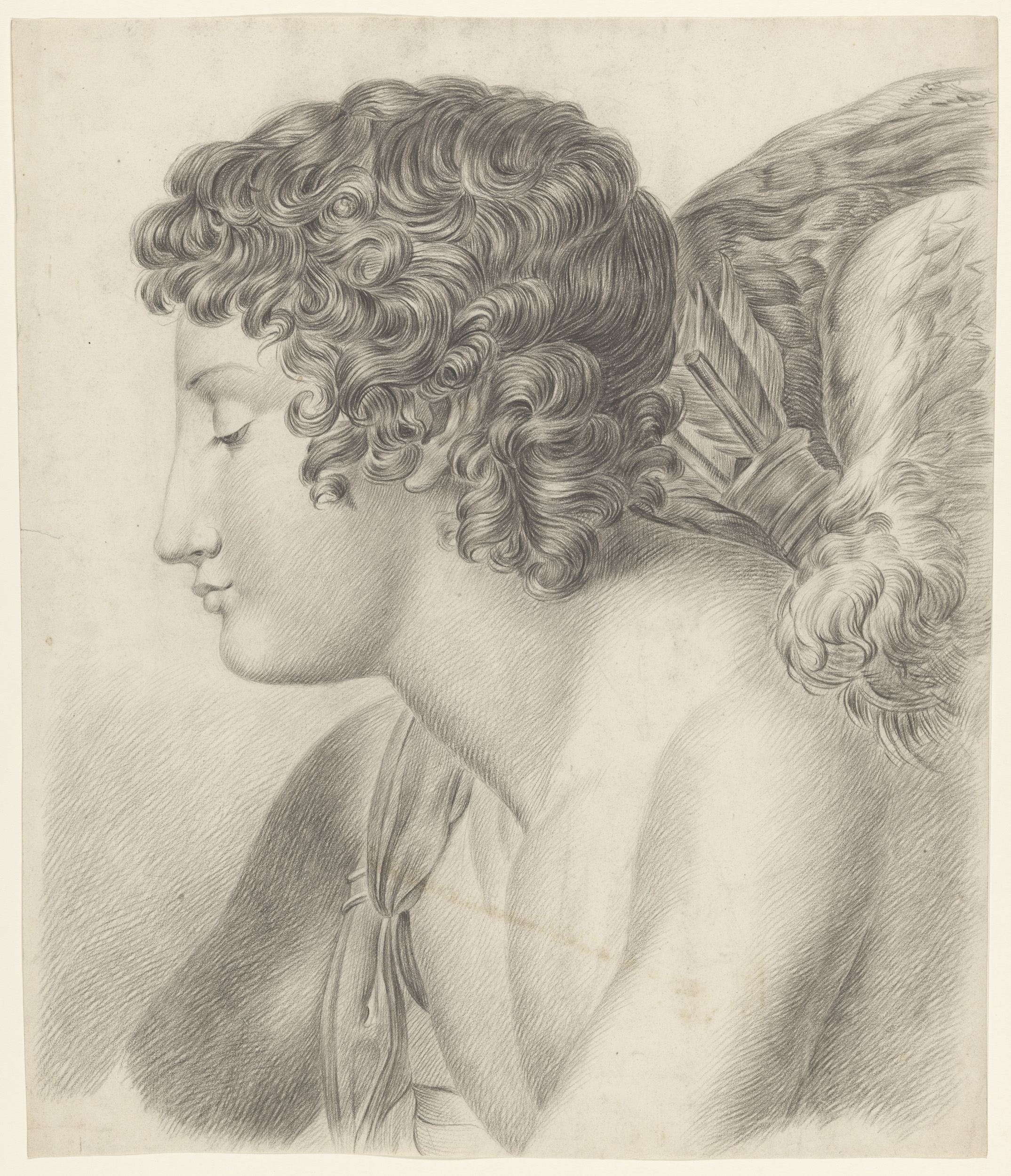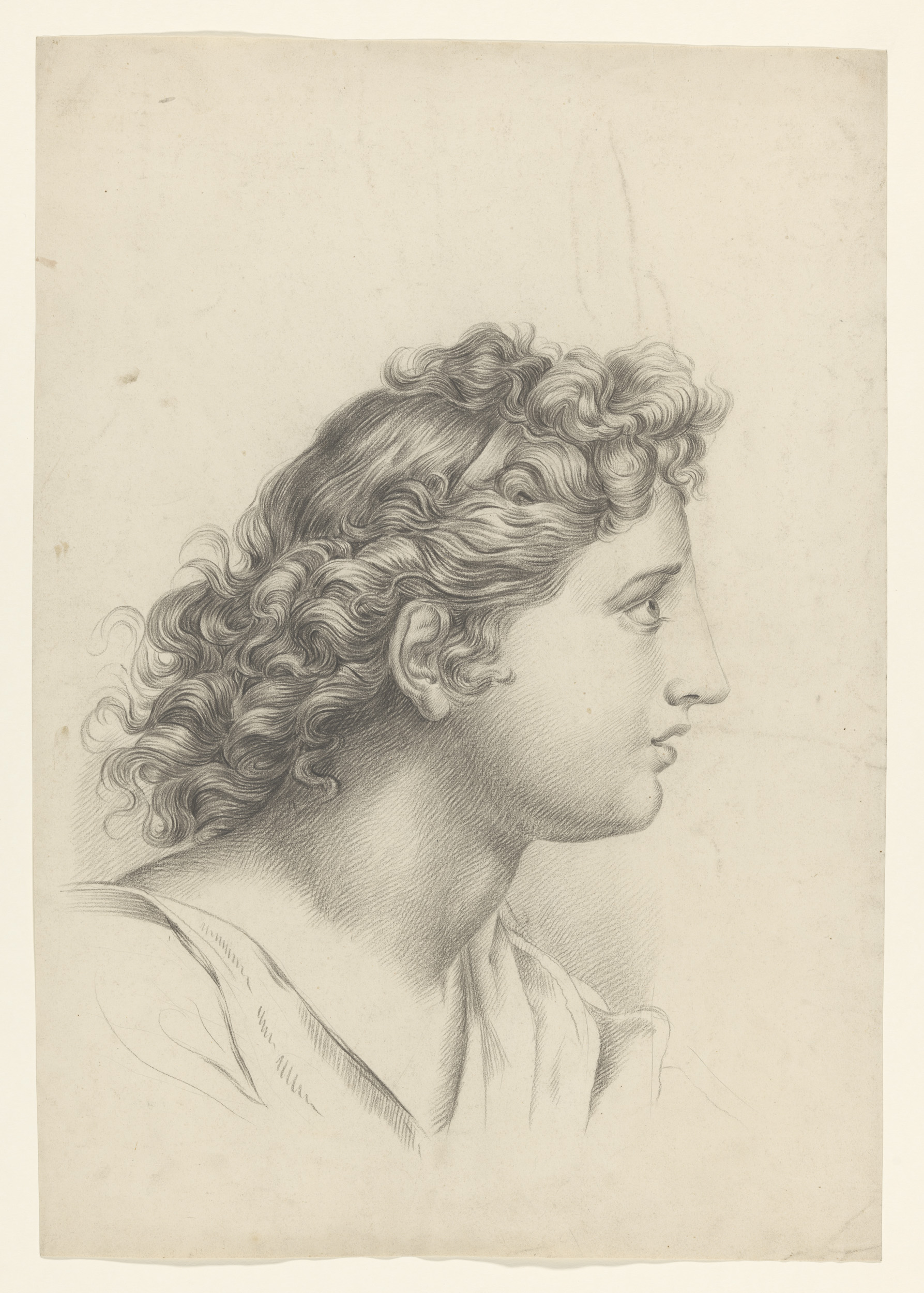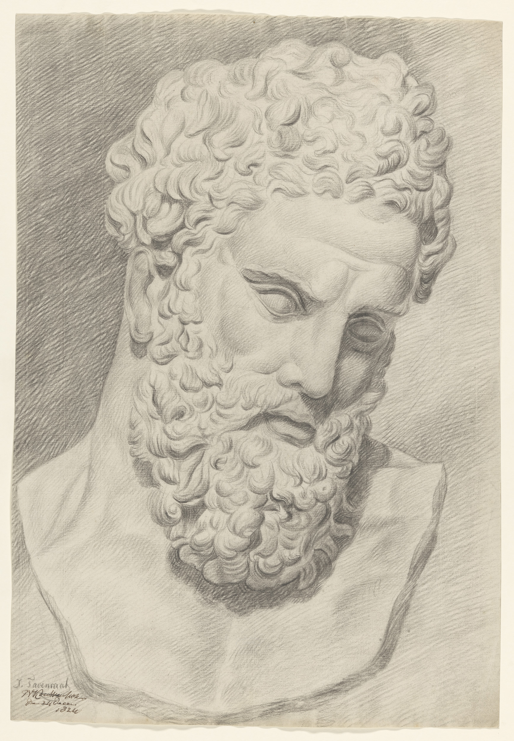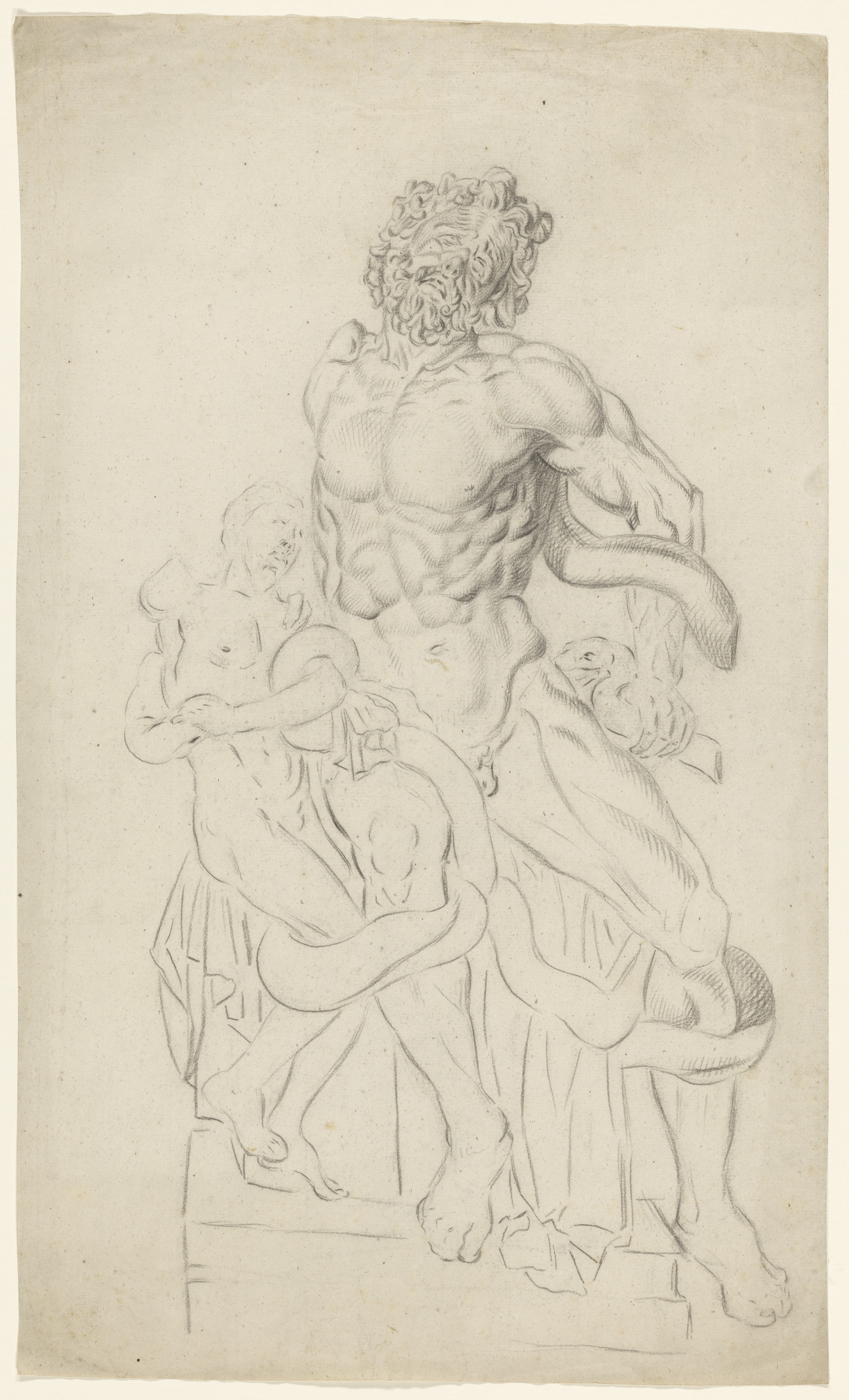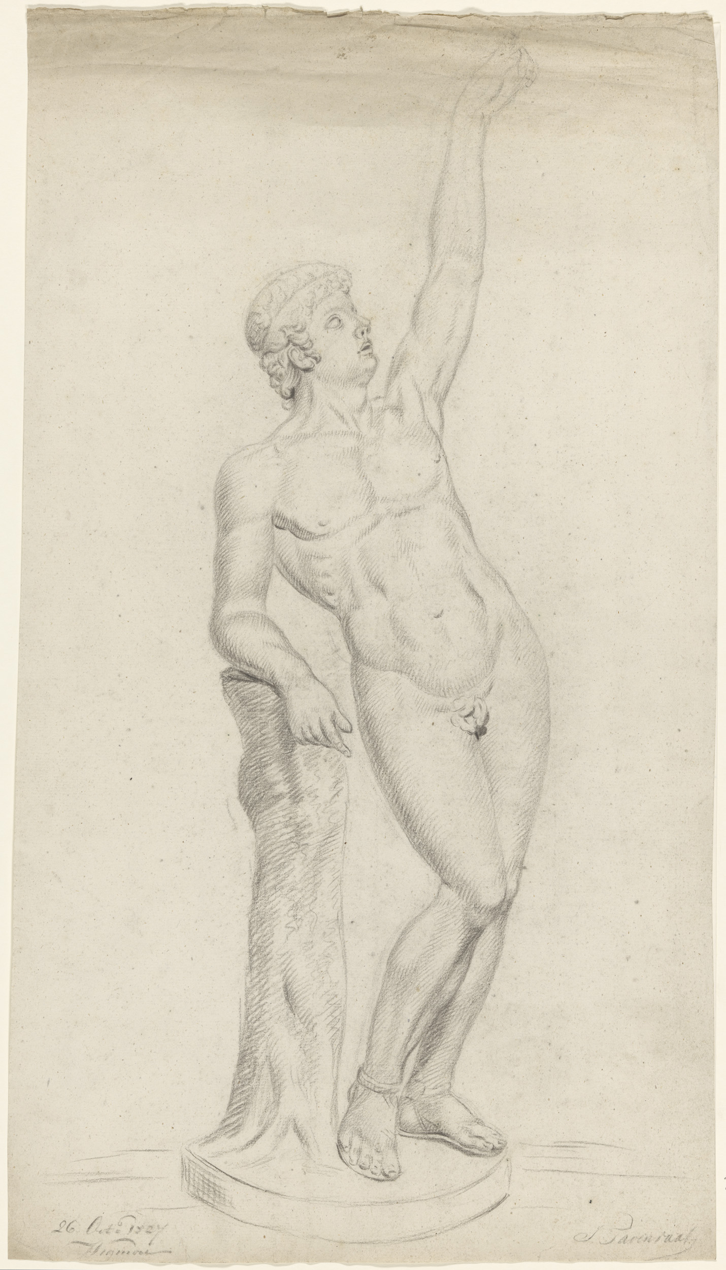 Gips van antiek beeld van staande naakt man, met opg...