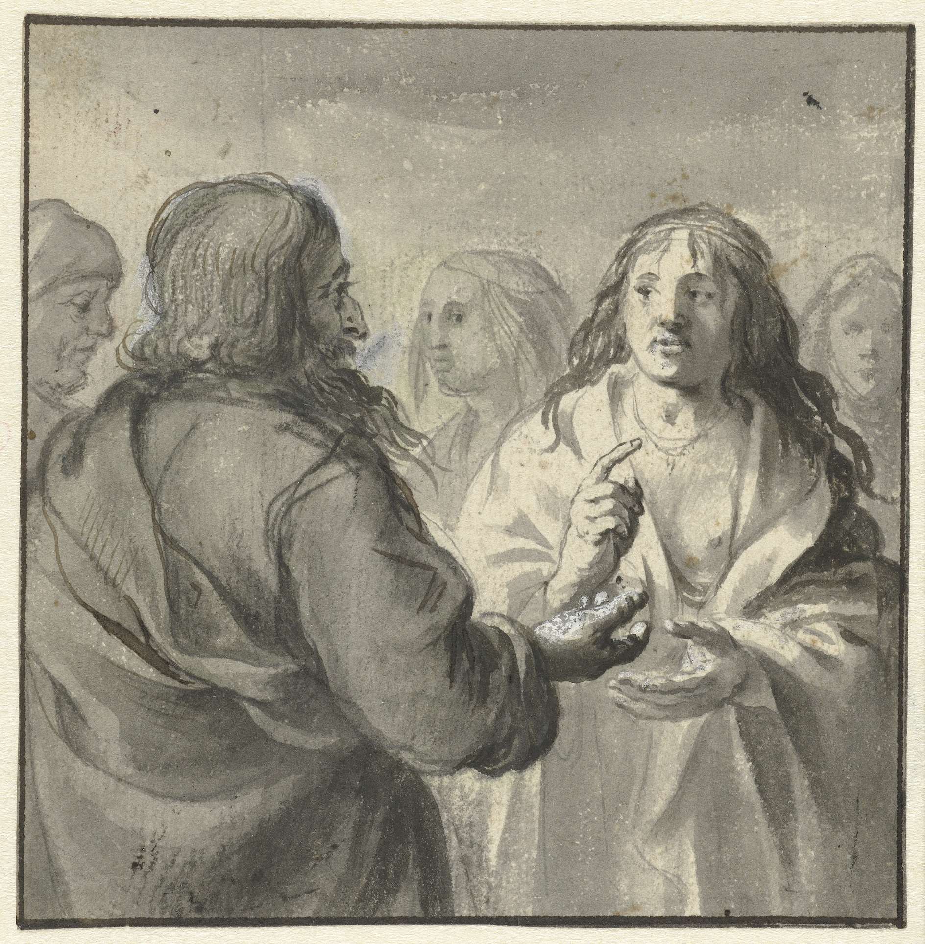 Waarzegster in een groepje van vijf figuren