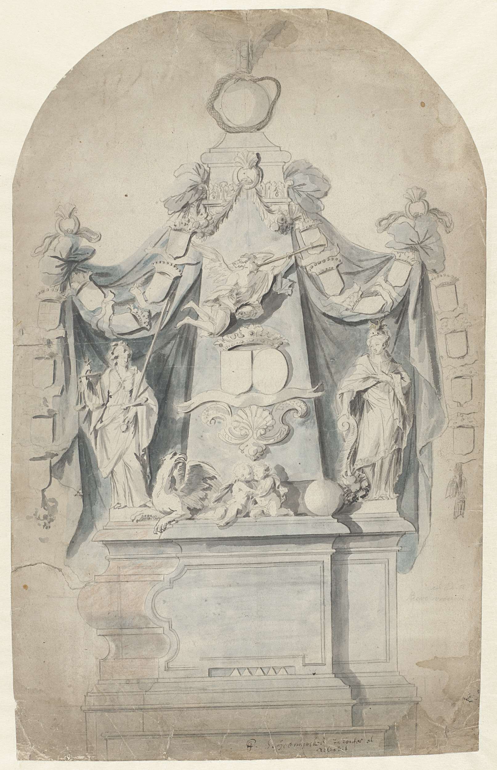 Ontwerp voor een grafmonument met Justitia, Fama en ...