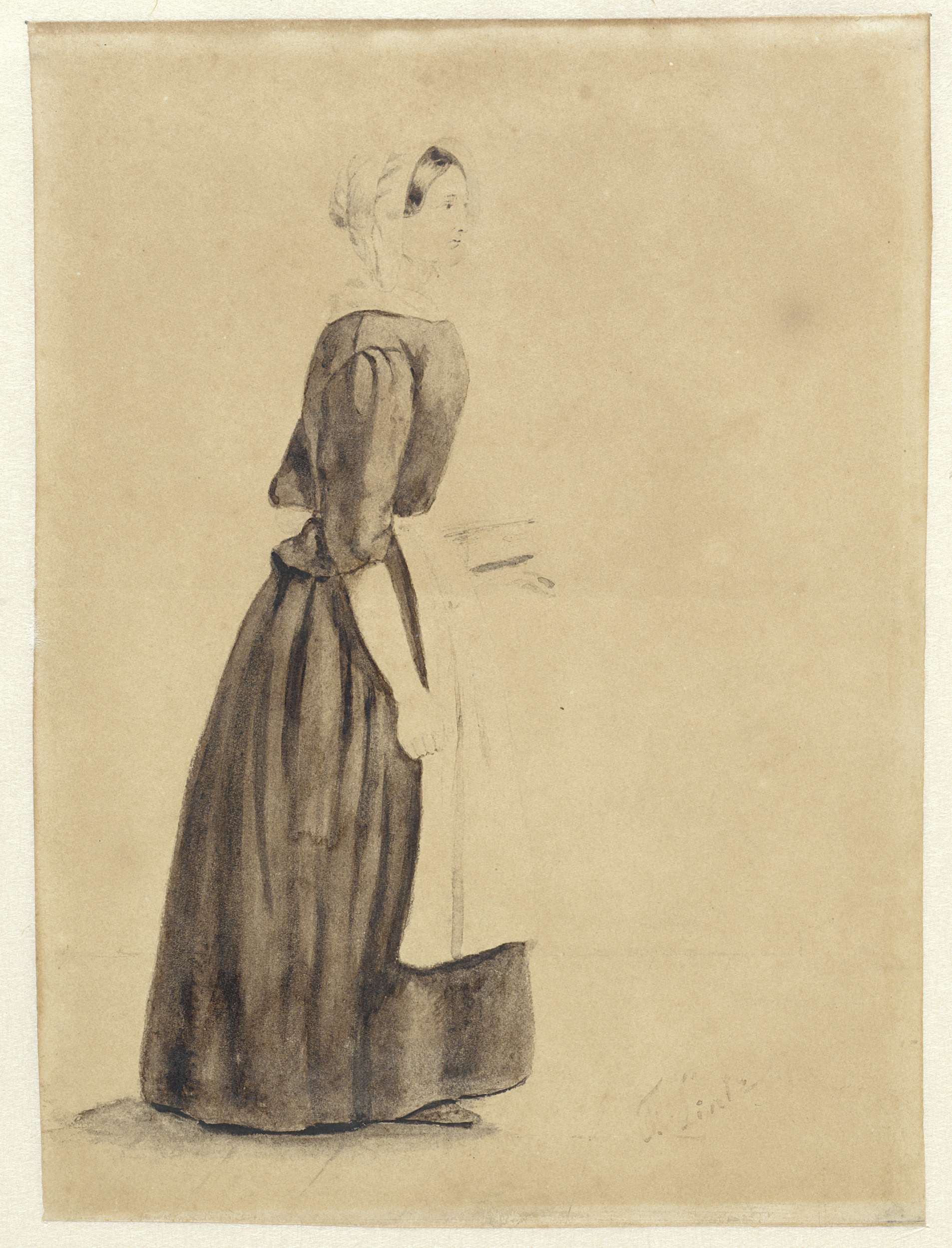 Staande vrouw, in profiel