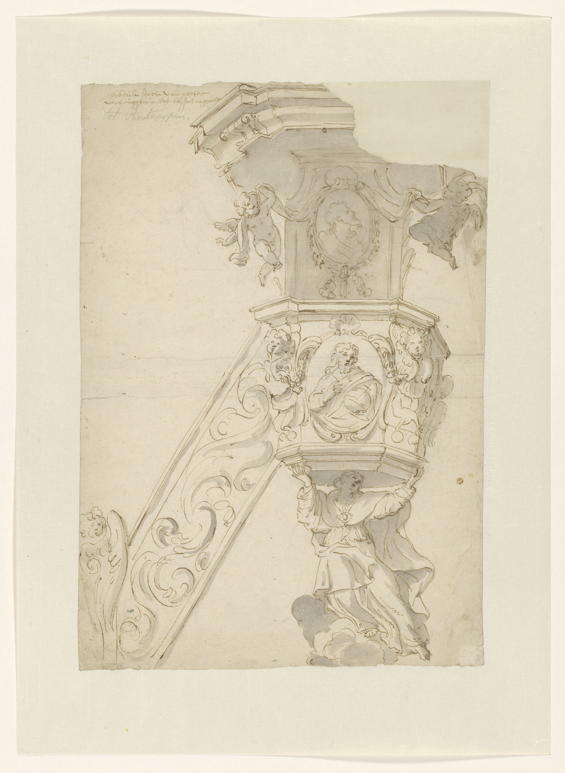 Ontwerp voor de preekstoel in de St. Annakapel te An...