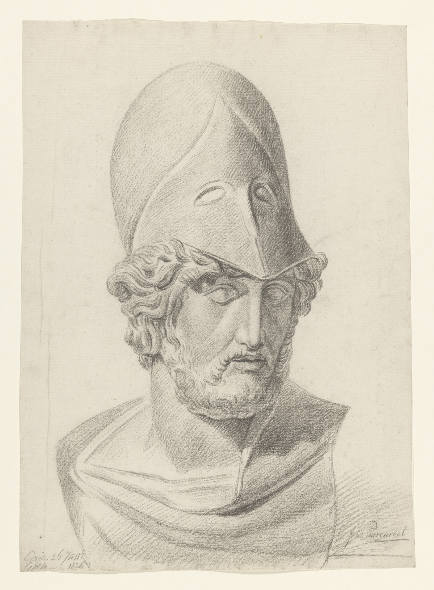 Gips van antieke buste van man met helm