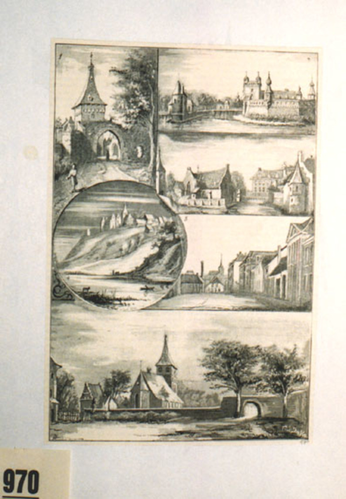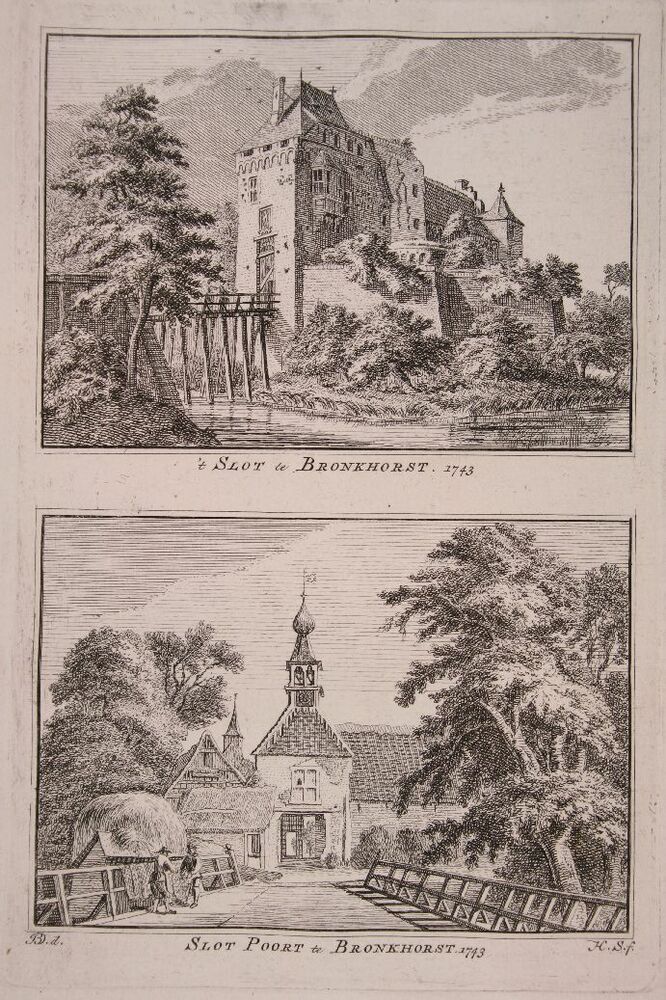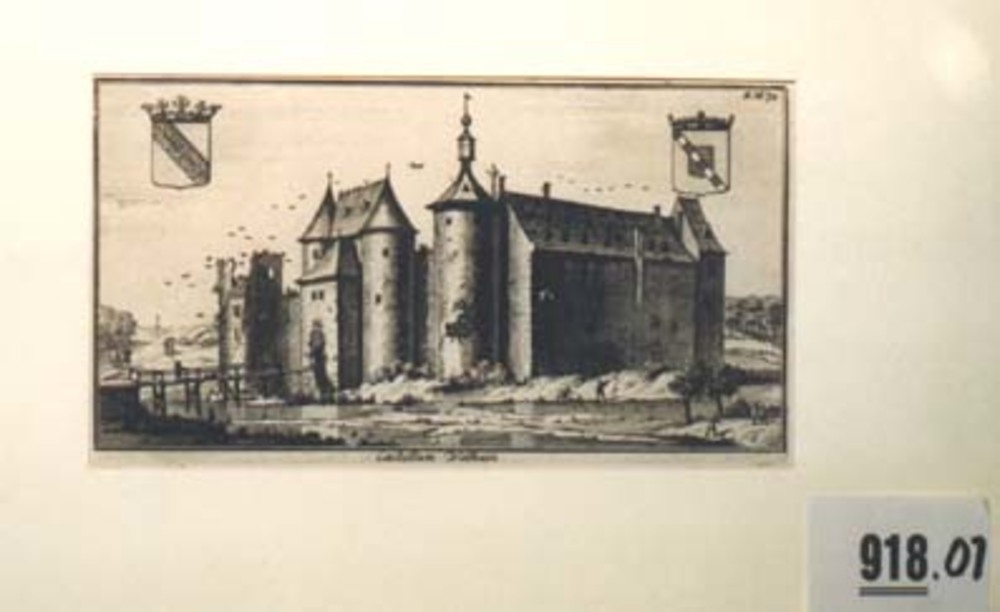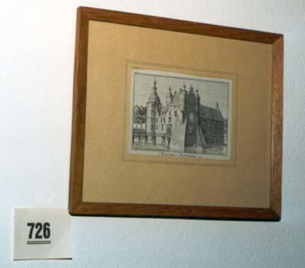 Prent "Kasteel te 's-Heerenberg. 1743" op papier naa...