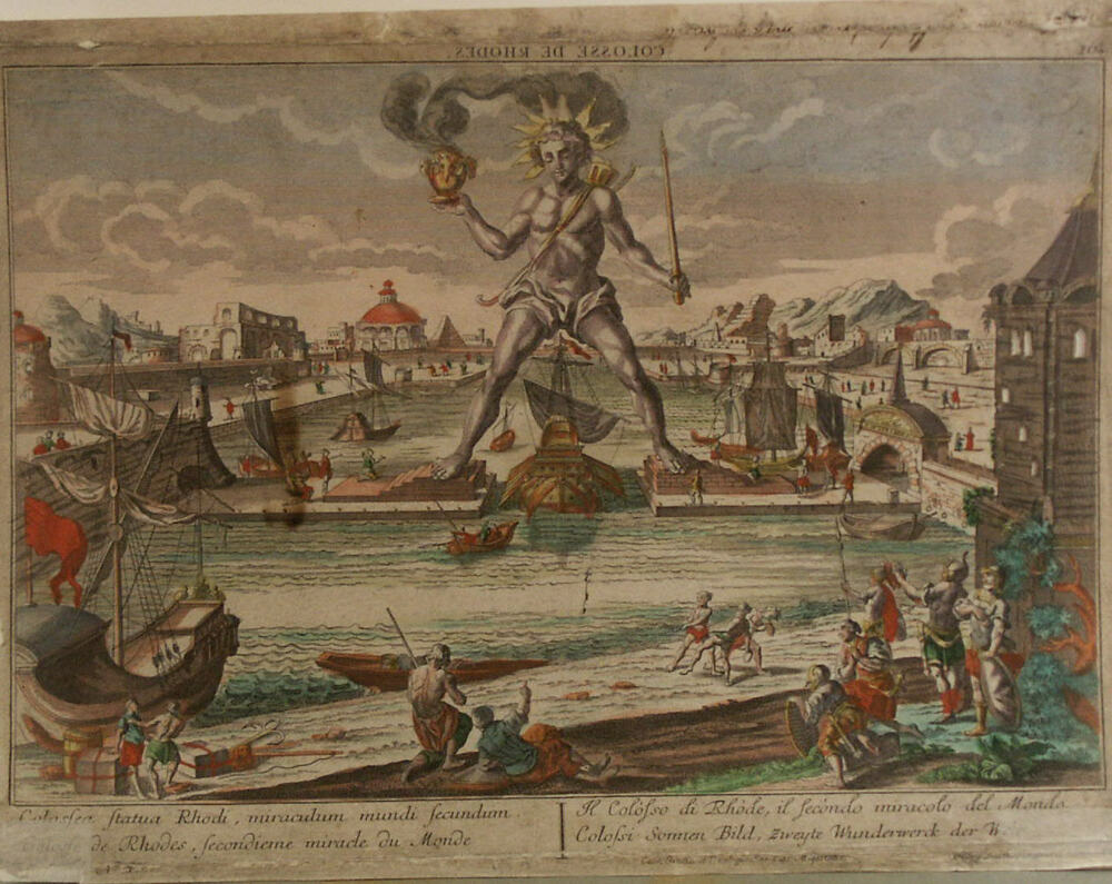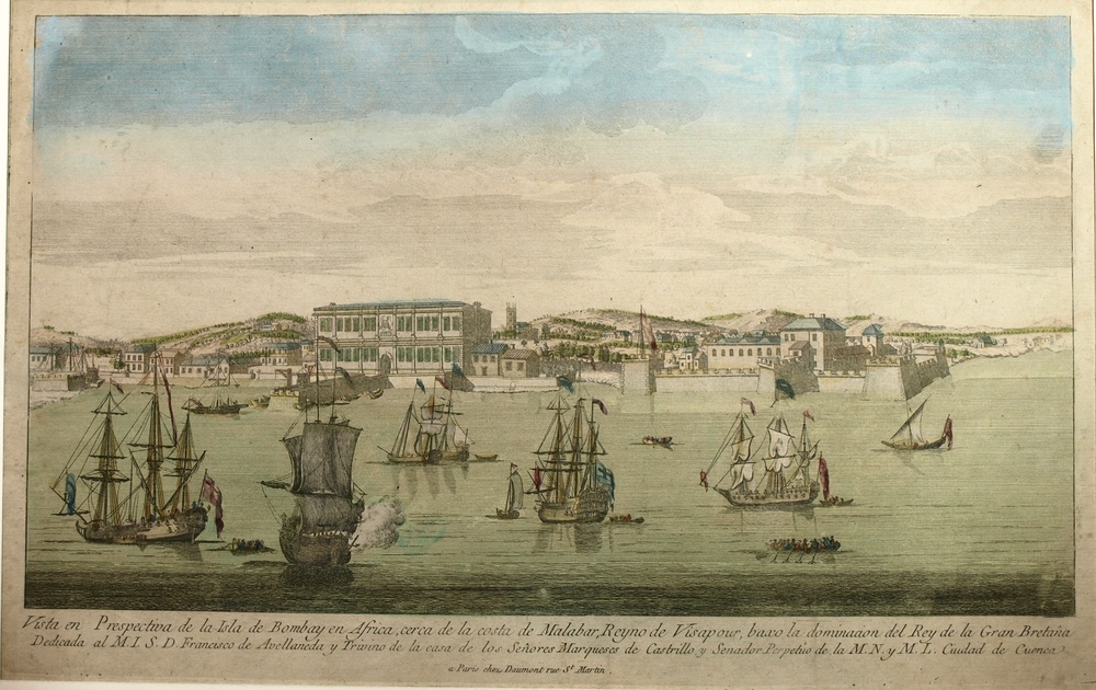 Perspectivische prent, gezicht vanuit zee op een ver...