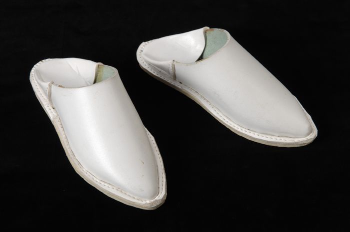 Paar witte leren muiltjes bij Marokkaans besnijdenispak