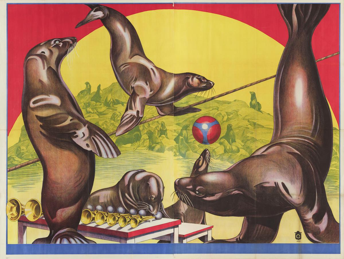 Zeeleeuwen in diverse acts (musicerend, op het slapp...