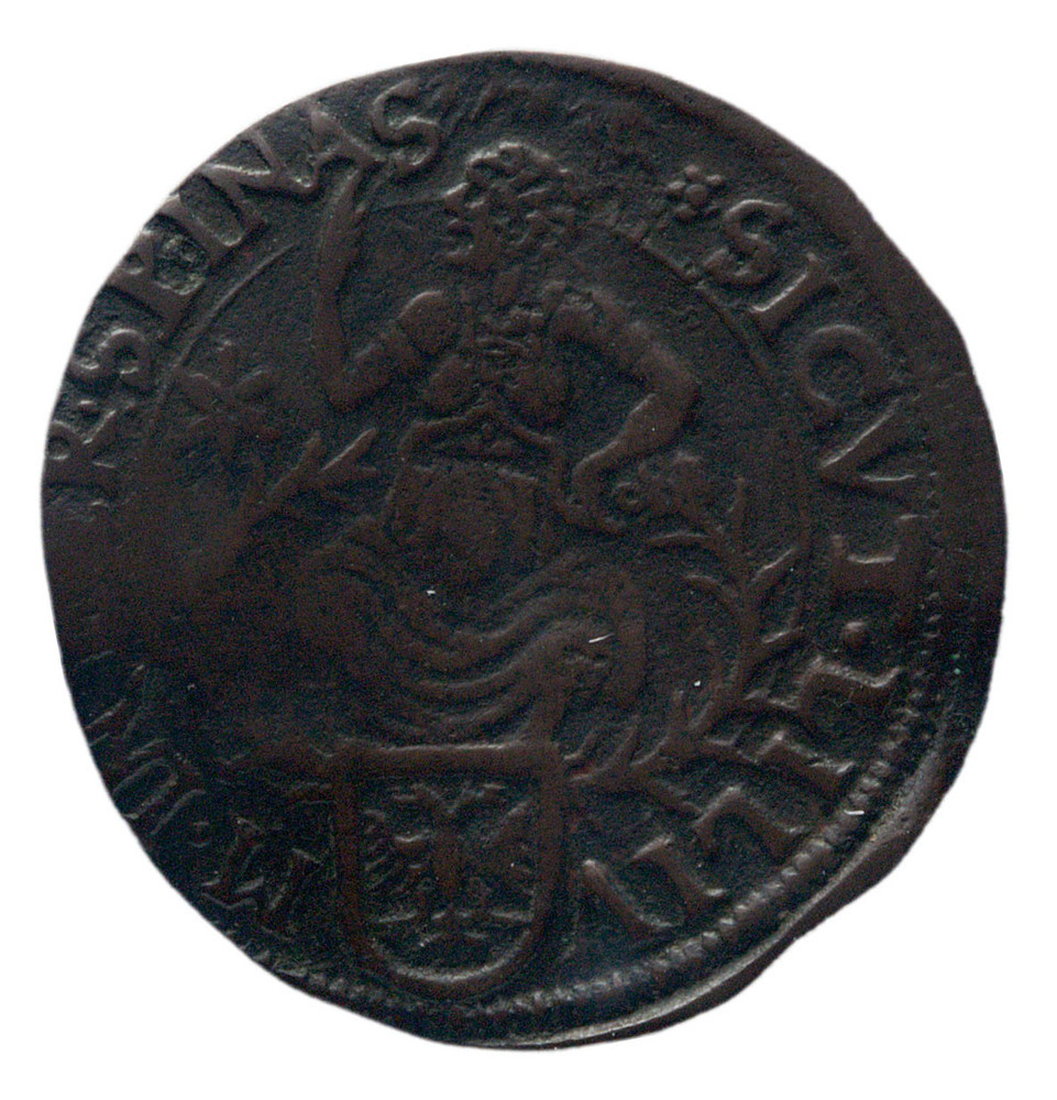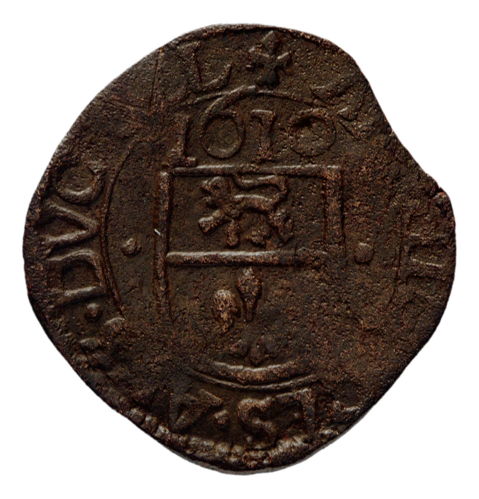 Duit uit Roermond op naam van Albrecht en Isabella, ...