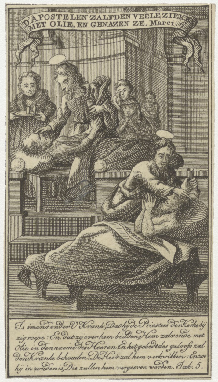 D'apostelen zalfden vele zieken met olie en genazen ...