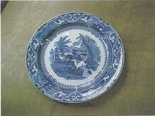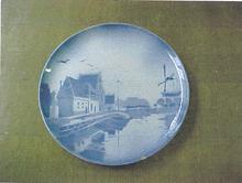 Bord met voorstelling haven met molen