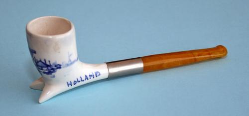 Tabakspijp. Doorroker, in Delftsblauw. ‘Marken’ mole...