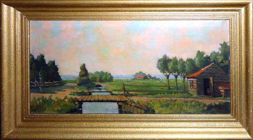 Olieverf op doek, Landschap achter de Vlaardingse Va...