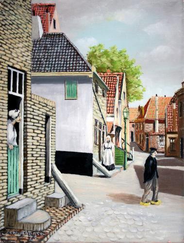 Olieverf op doek. Zomerstraat / Brede Steeg Vlaardin...