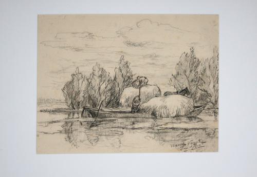 Potloodtekening. Hooischuit in de Vlietlanden, Vlaar...