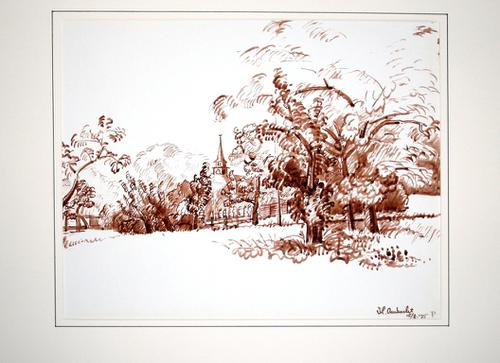 Gewassen pentekening. Landje van Chardon Vlaardinger...